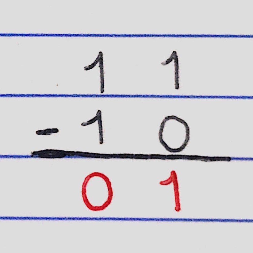 1 1 – 1 0 = 0 1.